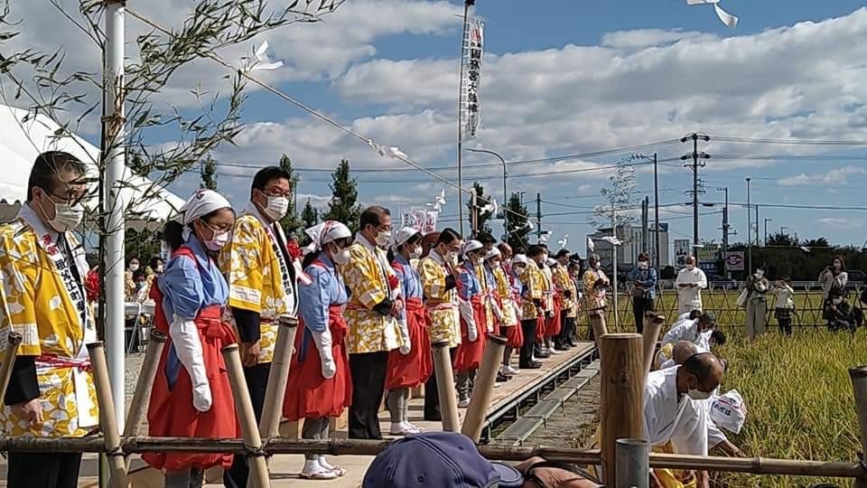 来年二月に稲沢市の国府宮で行われる「国府宮はだか祭」に向け、愛知県祖父江町の神饌田で抜穂祭がありました。祭りの名物「大鏡餅」のためのもち米を収穫し、奉納行事の成功などを祈願しました。 インフォメーション URLをコピーしました! 2021年10月1日に、一宮駅のアイビルにて内定式を執り行いました。 稲沢市医師会訪問看護ステーション 関連記事 令和6年度 愛知県農林基盤局優良建設工事施工業者として表彰されました。 2024年10月23日 愛知県休み方改革マイスター企業に認定されました! 2024年9月24日 令和6年度 安全大会を実施しました 2024年9月5日 R6年度 普通救命講習を受講しました。 2024年6月10日 2024年 国府宮神社で安全祈願祭を行いました。 2024年3月22日 災害対策訓練を実施しました。 2023年11月22日 24卒 内定式を行いました。 2023年11月20日 令和5年度 安全大会を実施しました。 2023年8月29日
