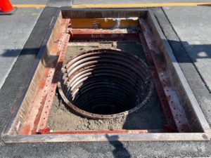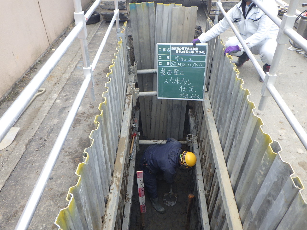 | 工事概要 | 工事延長 L=622.2m 管布設工 リブ付塩ビ管φ200 L=317.6m 管布設工 リブ付塩ビ管φ150 L=299.0m 組立マンホール工 1号マンホール 2箇所 組立マンホール工 特1号マンホール 7箇所 小型マンホール工 レジン製マンホール 1箇所 取付管工 VUφ100 38箇所 |