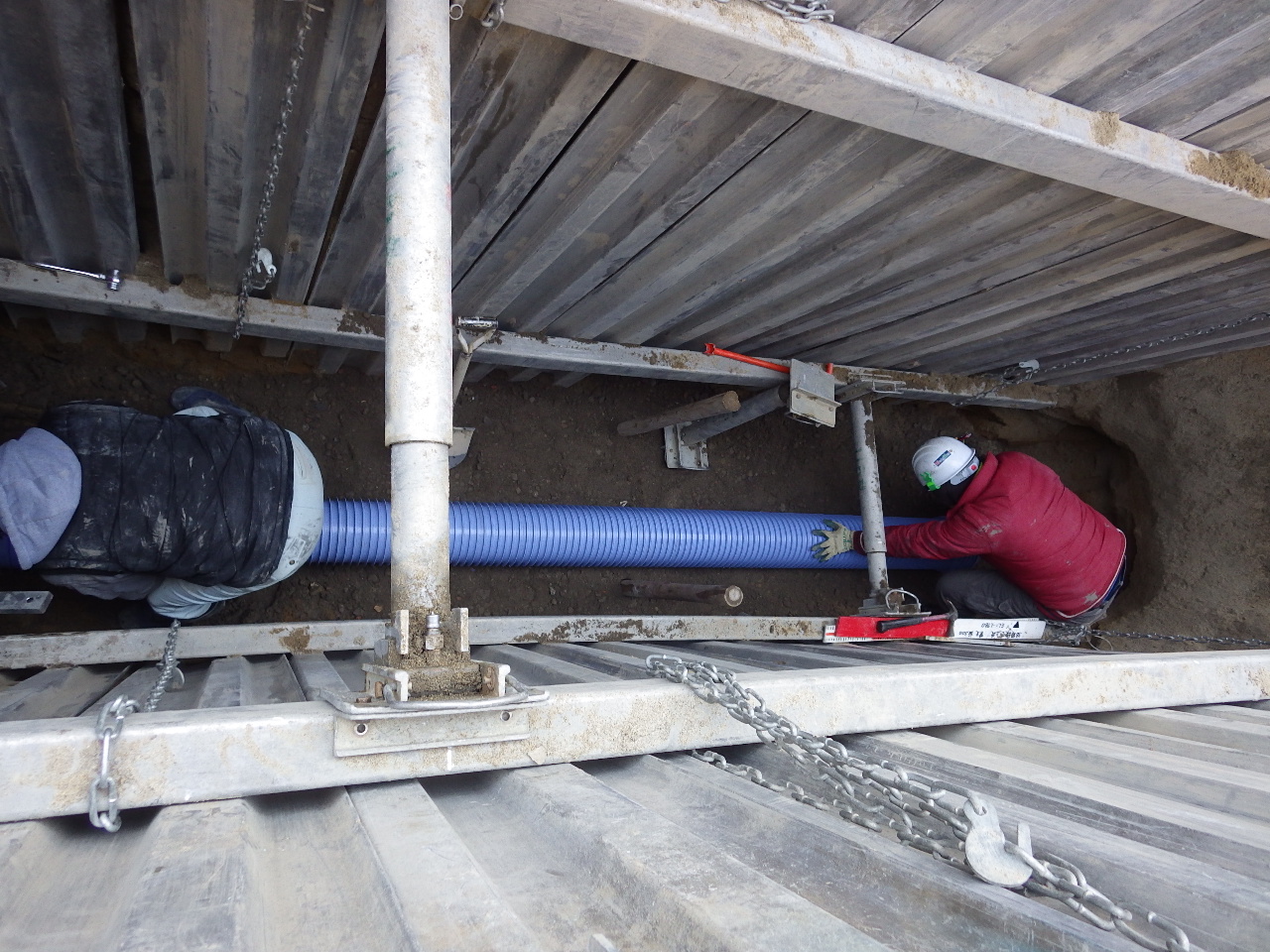 | 工事概要 | 工事概要:工事延長 L=429.6m ・管布設工 リブ付塩ビ管Φ200 L=295.44m ・管布設工 リブ付塩ビ管Φ150 L=120.64m ・組立マンホール工 1号マンホール 6か所 ・組立マンホール工 特1号マンホール 9か所 ・小型マンホール工 レジン製マンホール 2か所 ・取付管工 VUΦ100 26か所 |
