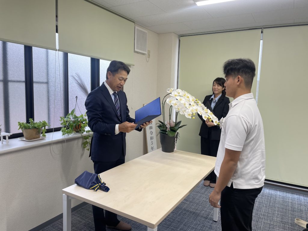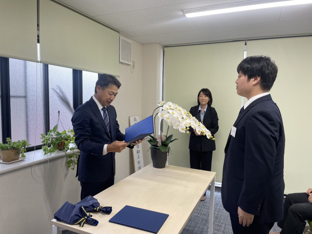 ささやかなプレゼントと共に、内定証書の授与を行いました。